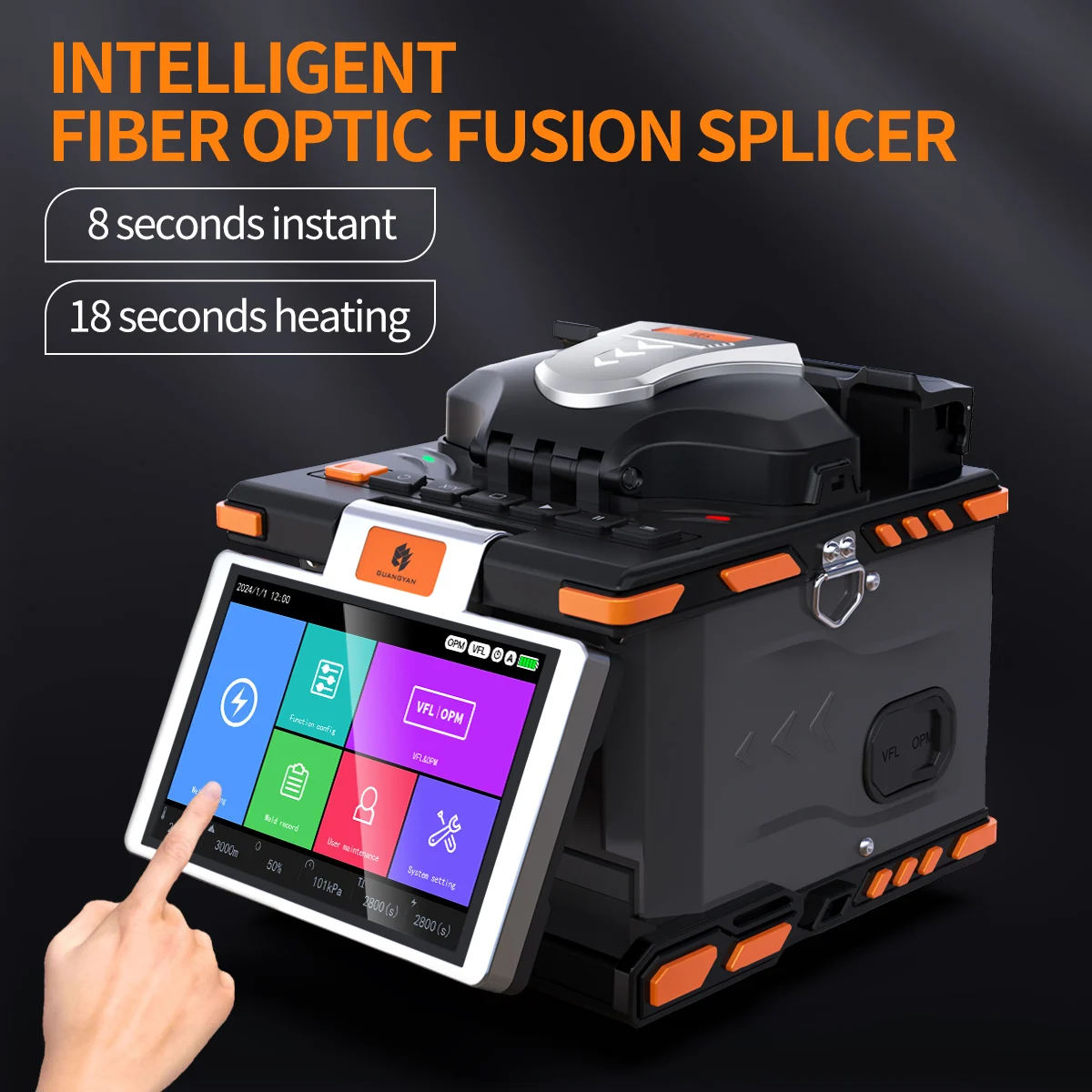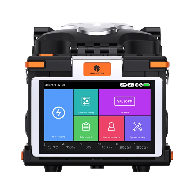 This intelligent fully automatic fiber fusion splicer features a built-in red light source and optical power meter with six-wavelength support and auto-calibration. With a six-motor drive system and a 180° rotatable high-resolution touchscreen, it ensures fast, precise, and user-friendly operation in demanding field conditions.