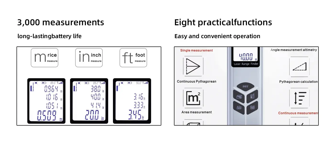 This laser rangefinder provides breakthrough 0.001m accuracy and is equipped with advanced features such as real-time angle sensing, 0.1s response time, and an intelligent chip for efficient measurement. Its portable and compact design, along with its high-precision optical system, ensures reliable performance across various applications. From construction projects to home measurements, this tool offers high efficiency and precision, making it an essential device for professionals.