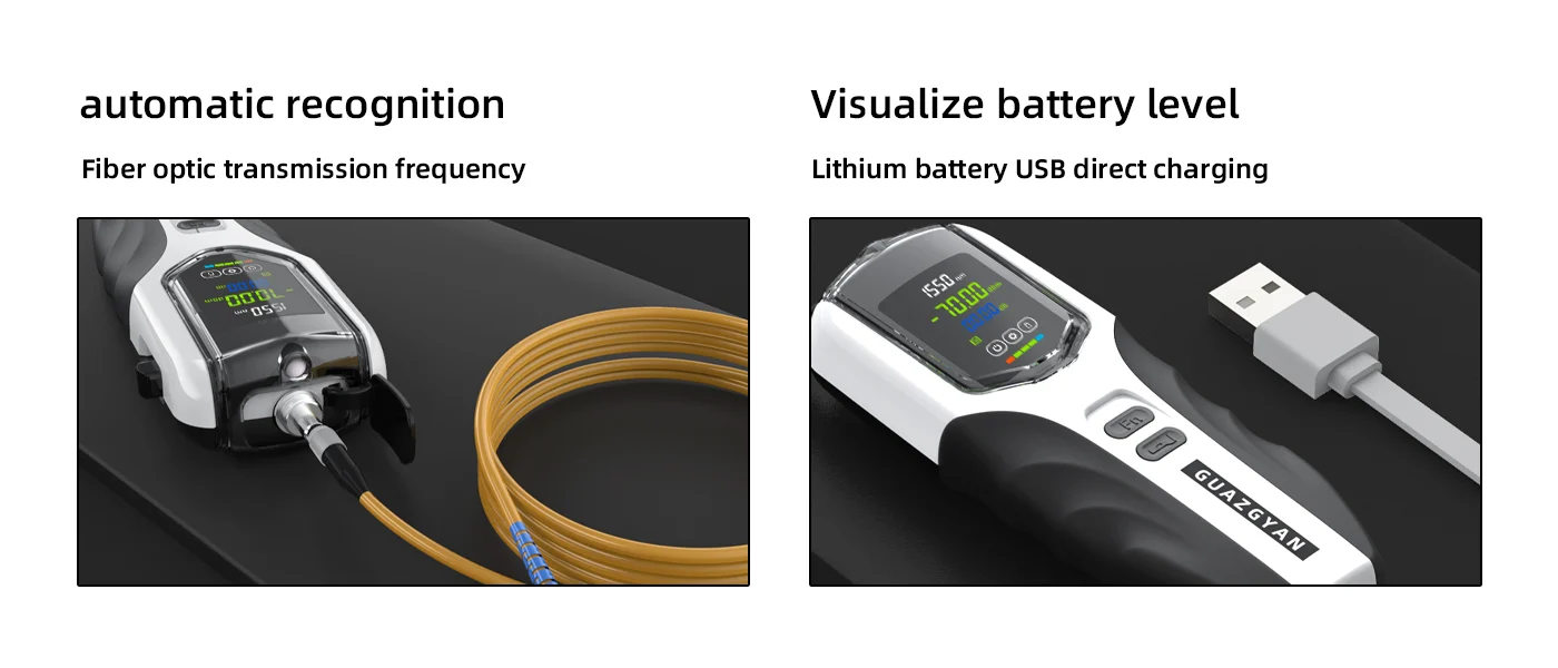 This Smart Optical Power Meter is equipped with a vivid LCD color screen for clear readings, designed for precise optical fiber signal testing in engineering and fieldwork. It supports multi-wavelength recognition, high-accuracy measurement, and features durable construction with ABS engineering plastic. With built-in USB charging, LED flashlight function, and a high-capacity lithium battery, it ensures efficient and reliable use in complex and dark environments.