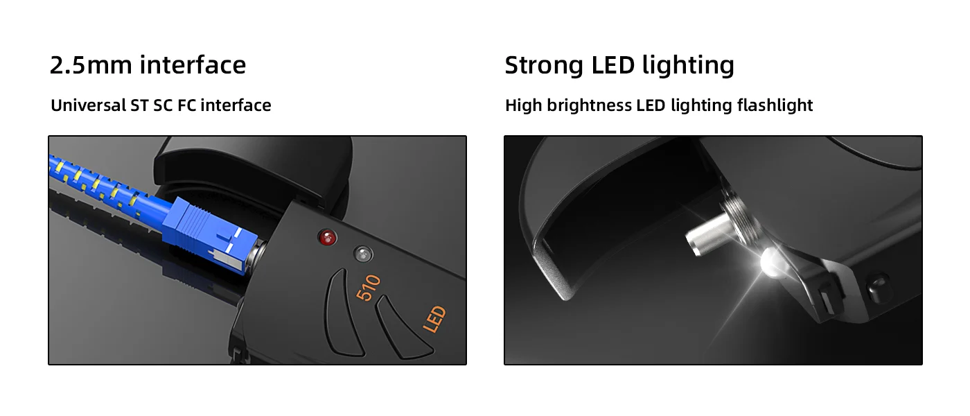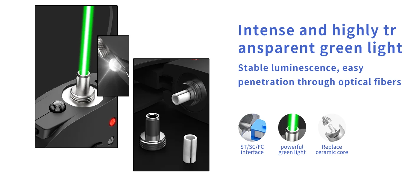 The 510 HD Green Light Test Pen offers powerful daylight-visible signal detection with a high-penetration green light source, designed for precise fiber fault testing. Featuring one-handed operation, Type-C fast charging, universal interface support, and replaceable ceramic core, it ensures efficient fieldwork even in dark environments with built-in LED illumination.